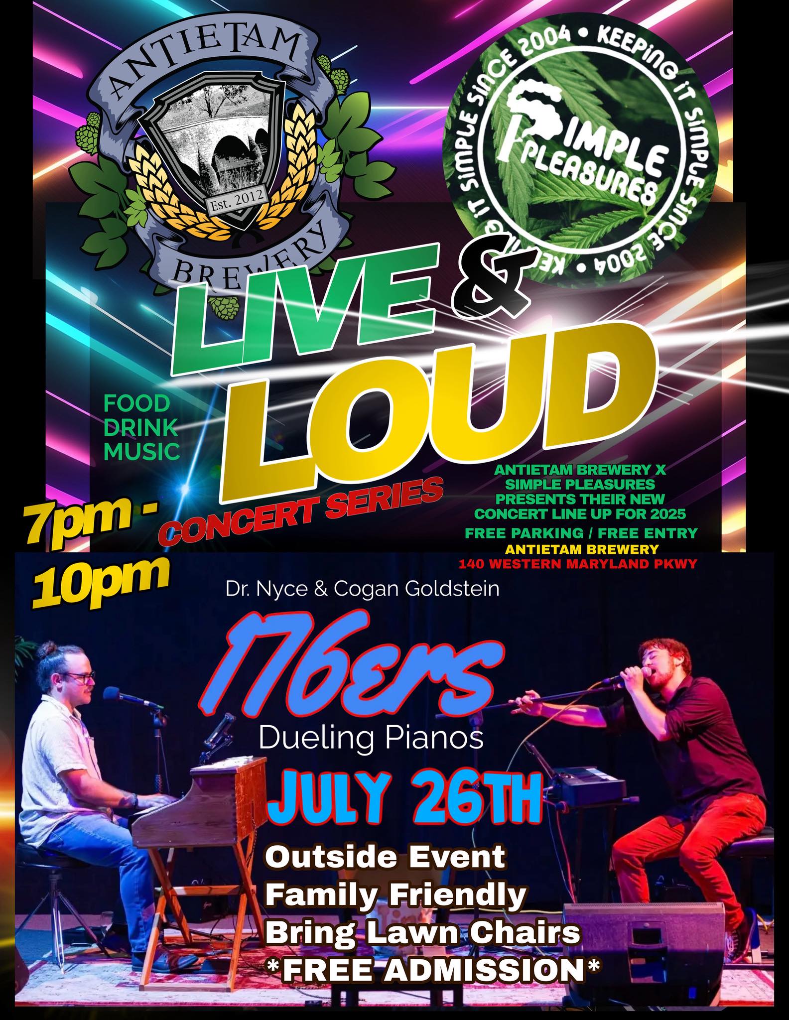 Get ready for a night of non-stop music, laughter, and sing-alongs as Dr. Nyce & Cagan Goldstein of the 176ers Dueling Pianos bring the party to Antietam Brewery!