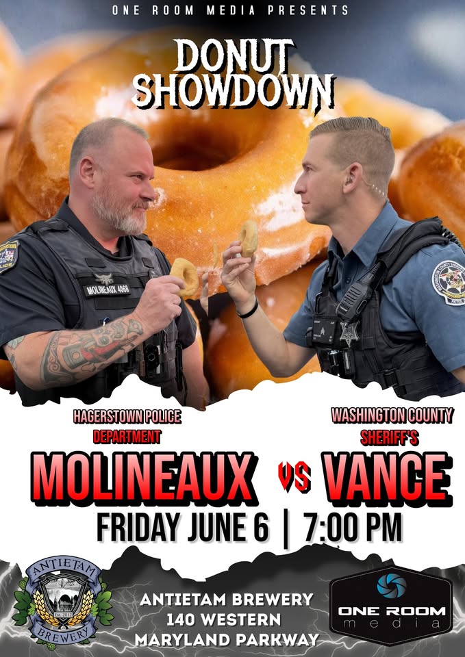 FRIDAY, JUNE 6TH @ 7PM – Get ready for a showdown like no other as Team Vance from the Washington County Sheriff’s Office takes on Team Molineaux of the Hagerstown Police Department in a 30-minute DONUT-EATING CHALLENGE you’ll never forget!