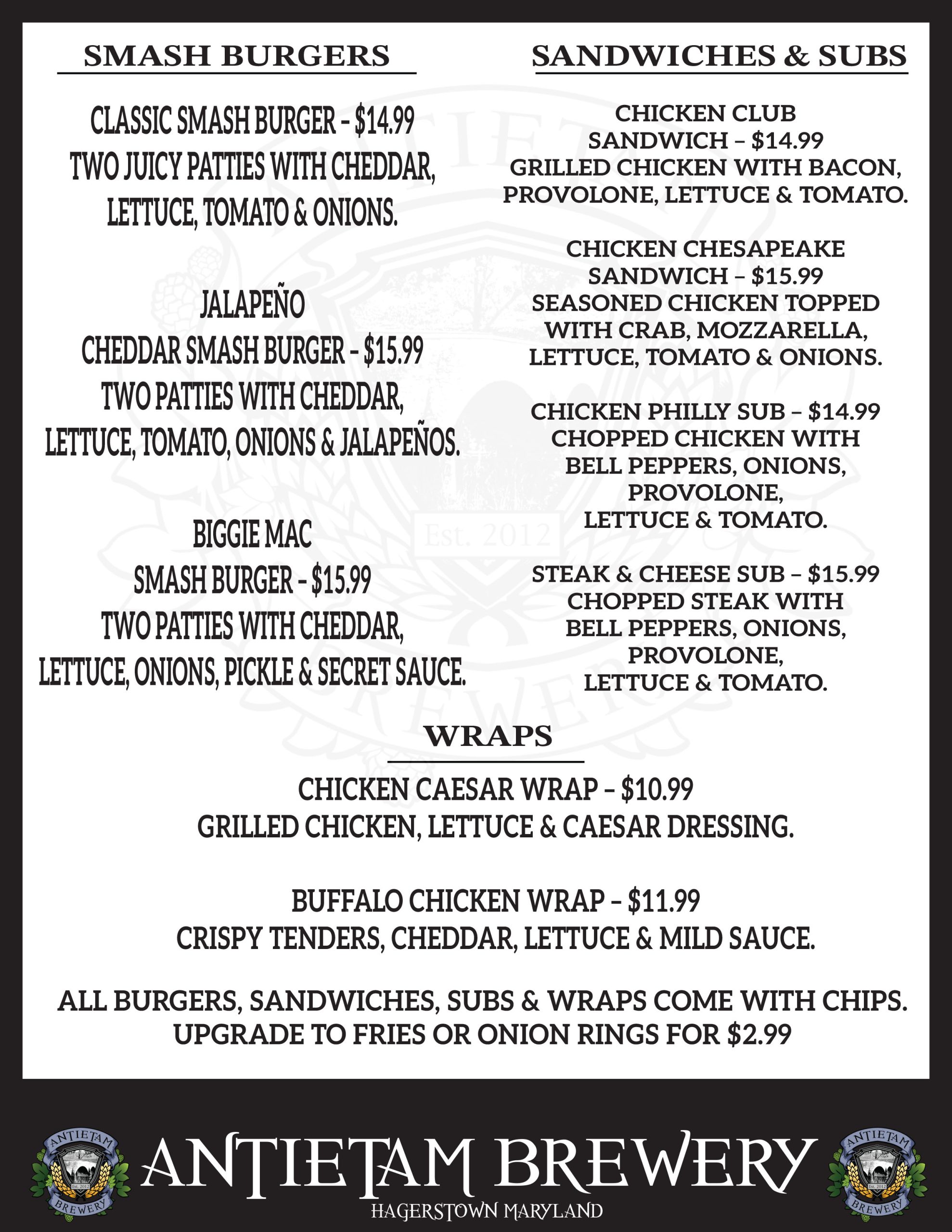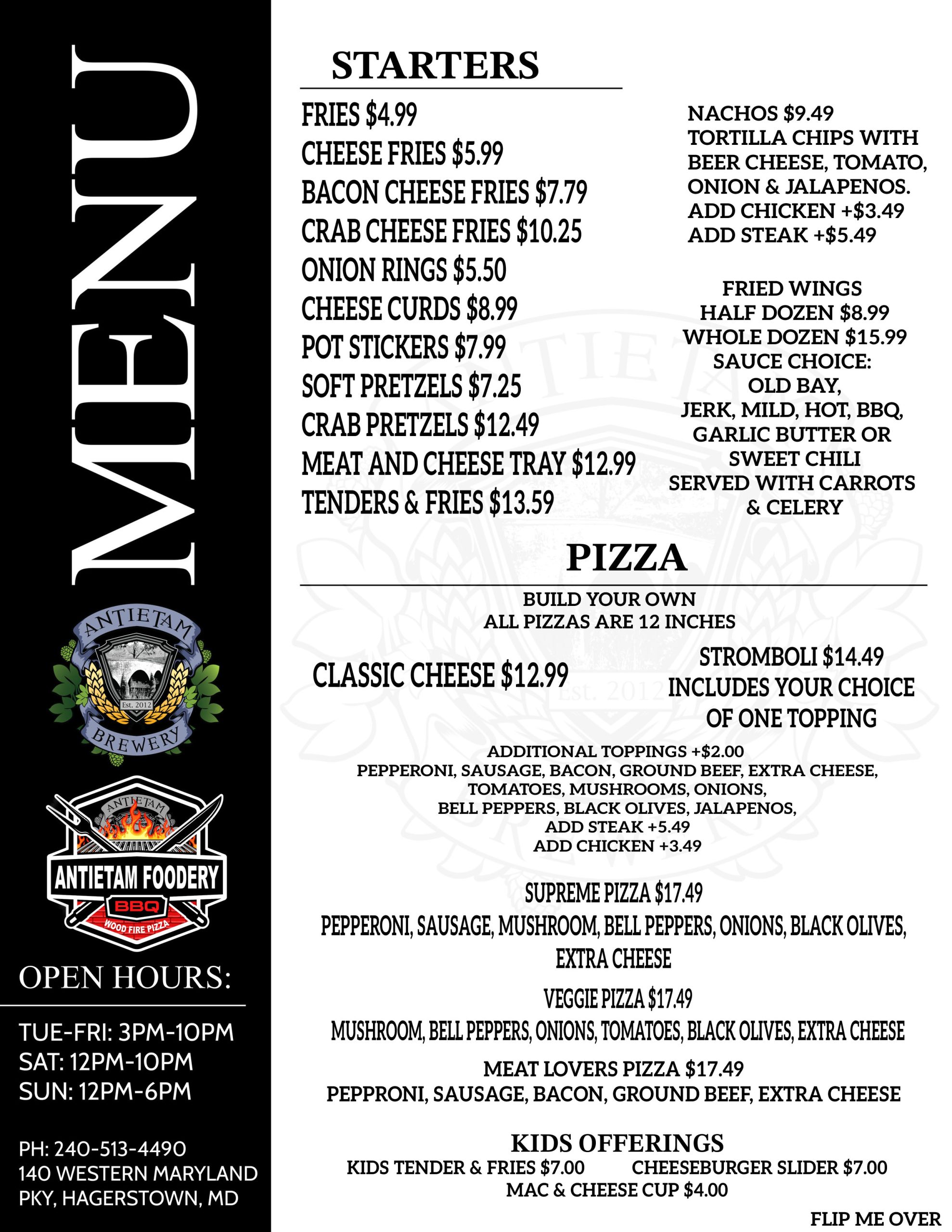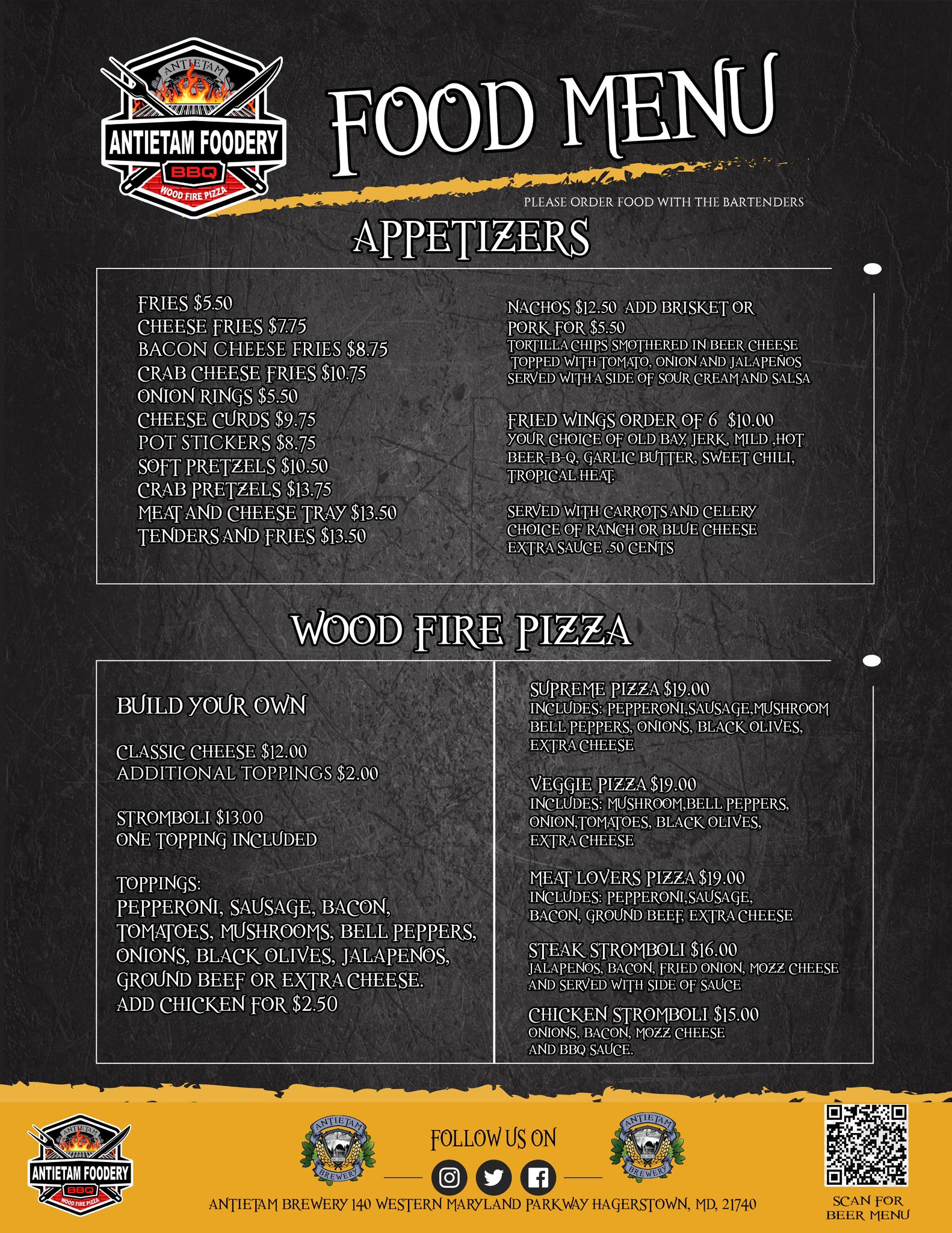 We are proud to present our new winter of 2025 menu! Still including our famous pizzas. Andrew and Ryan are always improving, changing, and staying with the tried and true. Our menu is on seasonal rotation, but always tasty! Stop on by the brewery to see what one-off our chef’s may have created as well.